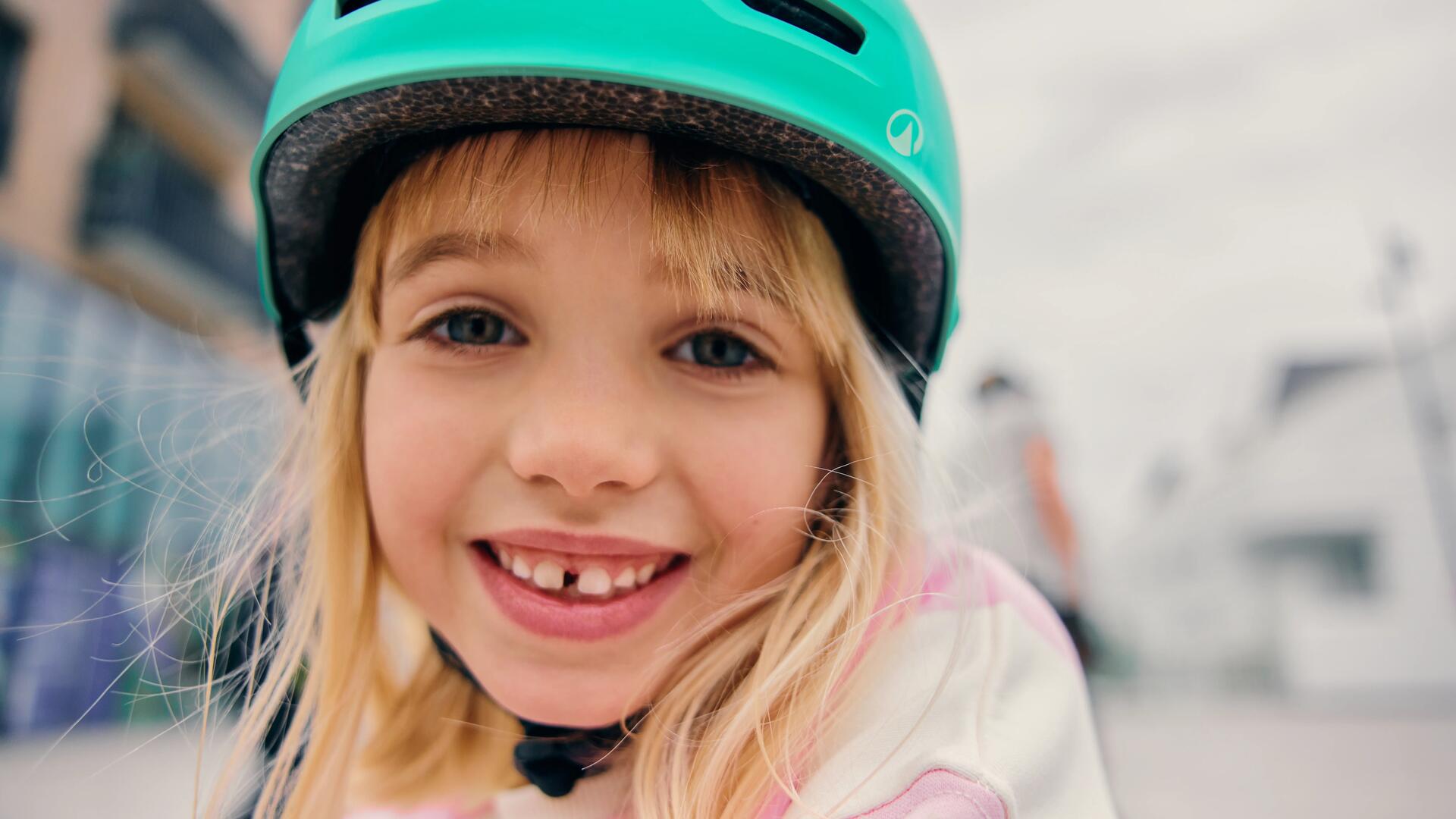 – slowly turn the wheel until the helmet stays stable and firmly in place. Be careful not to tighten it too far! Wearing the helmet might become very uncomfortable for your young cyclist.